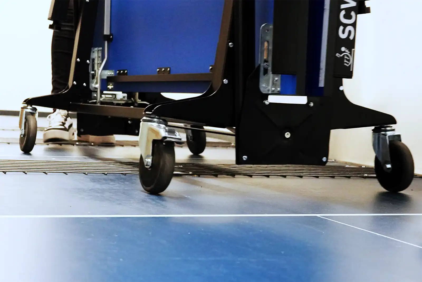 Dabei werden nicht nur die Abmessungen und die Ebenheit der Spielfläche geprüft, sondern auch die mechanische Sicherheit einschließlich Stabilität, Arretierung und Rollenmechanismen unter die Lupe genommen. Ein zentraler Bestandteil der Prüfung ist der Belastungstest: Auf jeder Seite der Spielfläche werden an verschiedenen Punkten Gewichte von insgesamt 80 Kilogramm platziert, um sicherzustellen, dass sich der Tisch auch unter starker Beanspruchung weder verbiegt noch dauerhaft verformt. Nur so kann eine gleichbleibend hohe Spielqualität garantiert werden. Ein ITTF-zugelassener Tisch erfüllt automatisch die Anforderungen der Klasse A nach DIN EN 14468-1. Umgekehrt bedeutet die Einhaltung der Klasse-A-Norm jedoch nicht automatisch eine ITTF-Zulassung, da hierfür zusätzliche Prüfungen hinsichtlich Farbe, Reflexion, Serienkontrolle und der Größe von Werbeflächen am Tisch erforderlich sind.