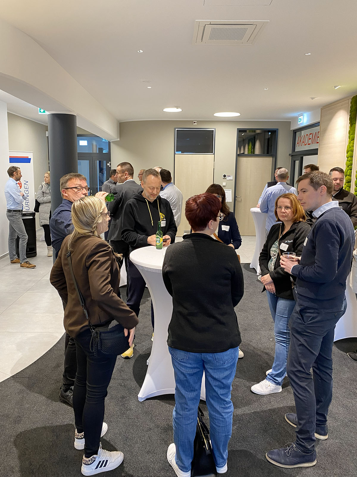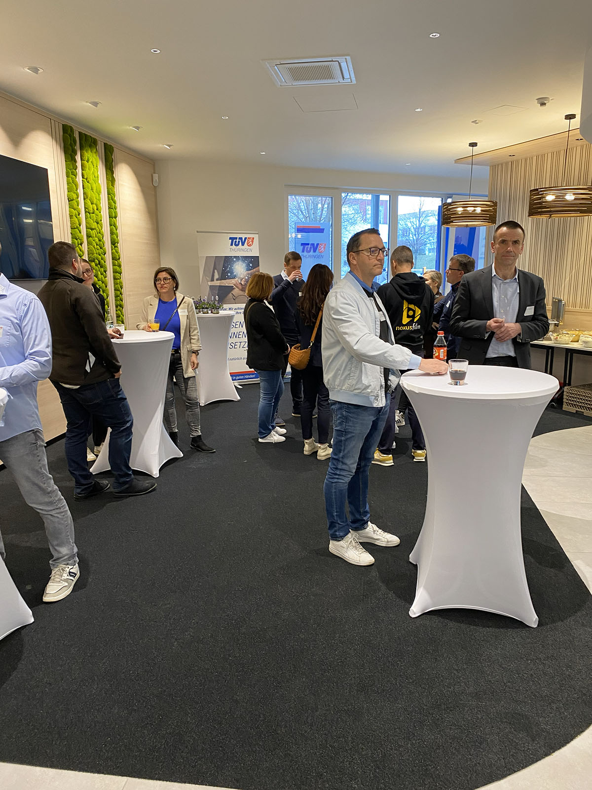 Im turnusmäßigen Wechsel tragen die Mitgliedsunternehmen den monatlich stattfindenden IEK-Unternehmerstammtisch aus. Erstmals lud der TÜV Thüringen den Stammtisch in unser Service-Center Erfurt ein und nutzte diese Gelegenheit, um auch die am Urbicher Kreuz ansässigen Mitglieder des Forschungs- und Industriezentrum Erfurt (FIZ) am netzwerkübergreifenden Austausch teilhaben zu lassen. Unter dem Leitthema „Arbeitssicherheit, Mentale Gesundheit und Verkehrssicherheit – im Spannungsfeld von Technologie und KI“ begrüßte Volker Höhnisch die Gäste in den Seminarräumen der TÜV Akademie. Der sich daran anschließende Impulsvortrag von Marcel van de Wal zeigte auf, wie Technologie im KI-Zeitalter Teams stärkt und gab einen praxisnahen Blick auf die Auswirkungen von KI auf Mitarbeitende aus der Perspektive der Arbeitspsychologie. Statt weiterer Frontalvorträge konnten sich die Teilnehmer an den eingerichteten Meetingpoints mit unseren Experten aus dem Fahrzeugbereich rund um die Verkehrssicherheit sowie zu gesetzlichen Anforderungen und DGUV-Vorgaben austauschen. Am Überschlagssimulator konnte Sicherheit hautnah erlebt werden. Und auch die Arbeitssicherheitsexperten der TÜV Thüringen Anlagentechnik standen für fachliche Fragen und einen direkten Dialog bereit.