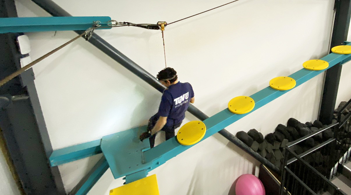 Die Experten des TÜV Thüringen führen sowohl Prüfungen nach der Installation als auch regelmäßige umfassende Jahresinspektionen durch. Ziel der Prüfungen ist es stets, mögliche Sicherheitsrisiken frühzeitig zu erkennen und zu beheben, bevor sie im laufenden Betrieb zu Problemen führen können. Um sich ein realistisches Bild vom Zustand der Anlagen zu machen, ist voller Körpereinsatz gefragt: Die Sachverständigen testen Sprungflächen, Landebereiche und Konstruktionen teilweise auch praktisch. Nur so lassen sich Belastungen und mögliche Schwachstellen realistisch beurteilen und ein umfassender Eindruck von der Sicherheit der gesamten Anlage gewinnen.