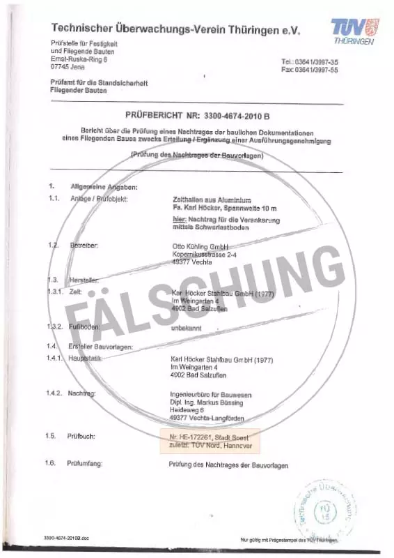 Folgende gefälschte Prüfzeichen und Zertifikate des TÜV Thüringen sind uns bekannt geworden, jedoch von uns selbst in keiner Weise veranlasst:
