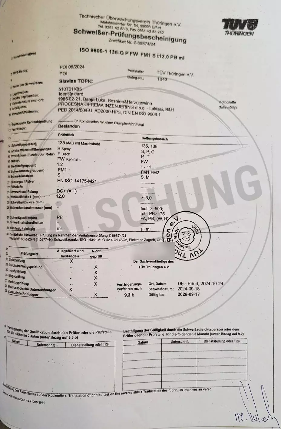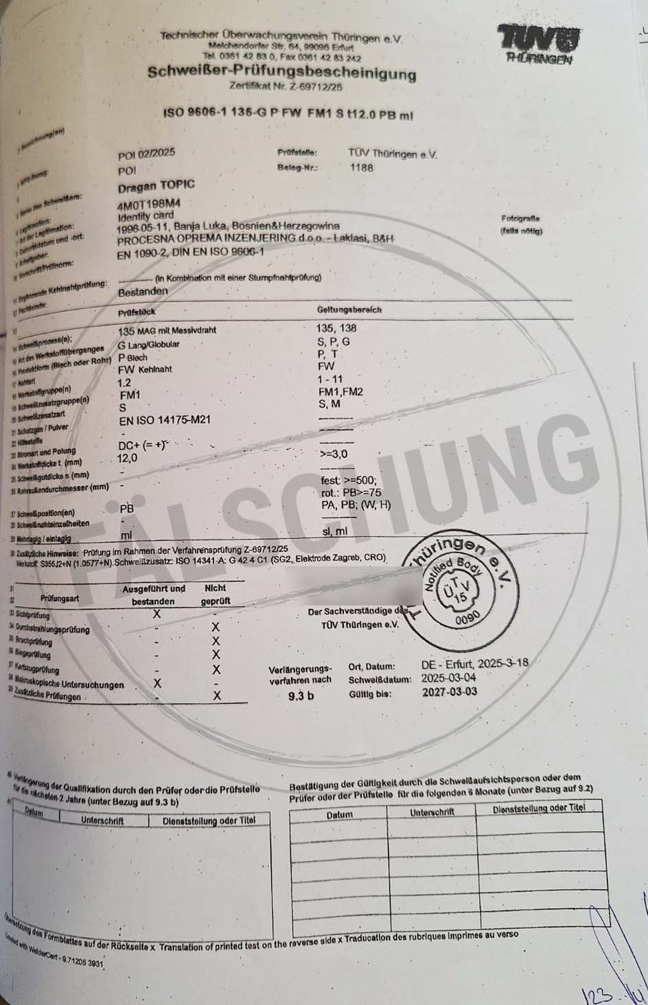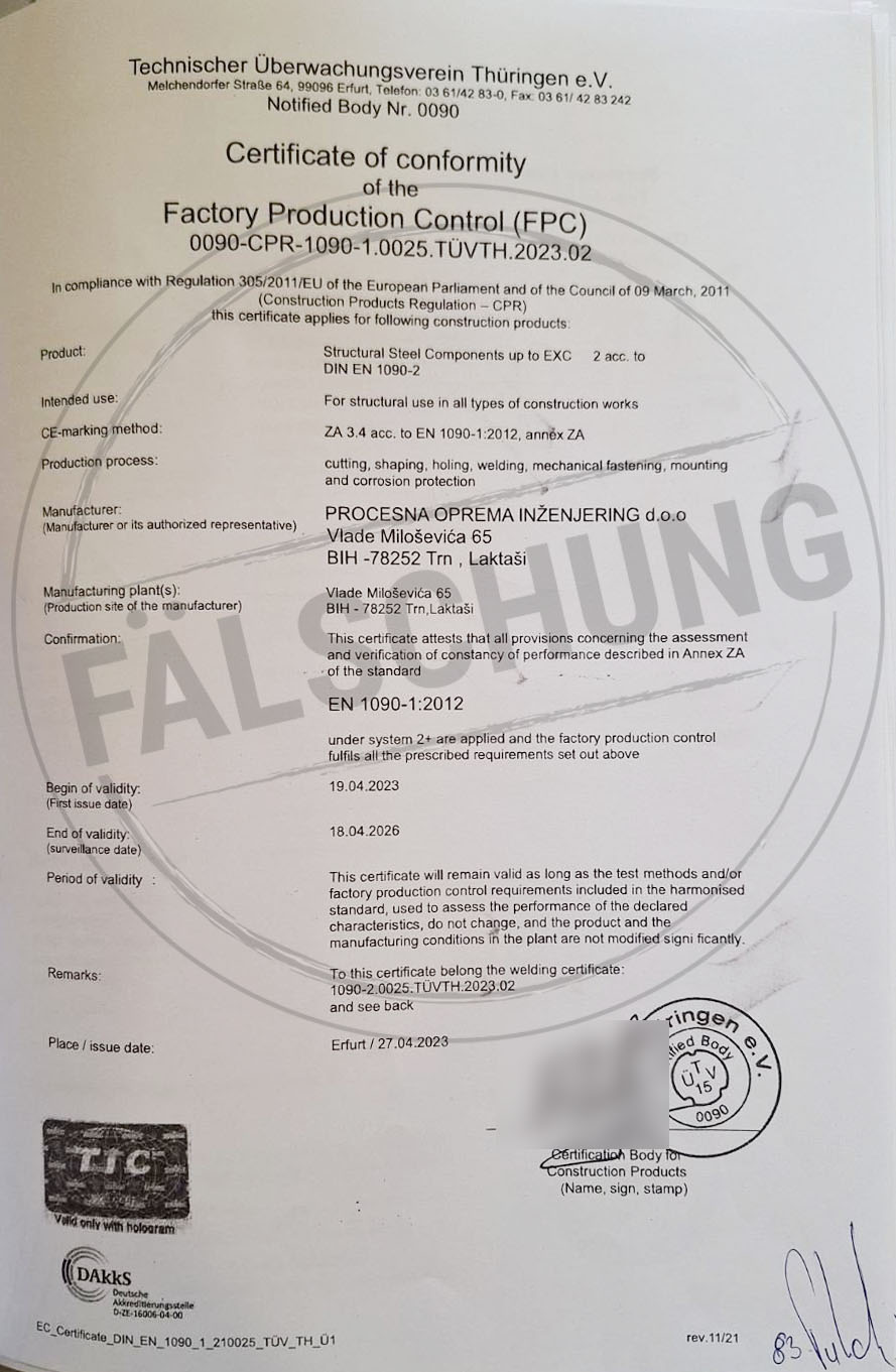 Следующие подделанные знаки контроля и сертификаты TÜV Thüringen, которые ни коим образом нами лично не распространялись, известны нам:
