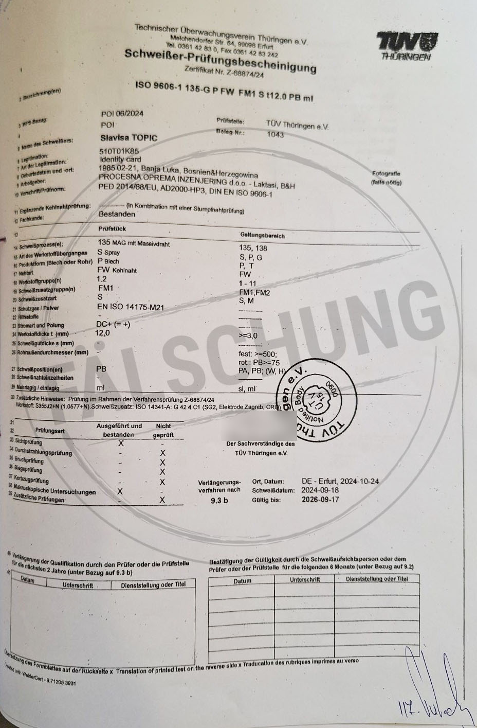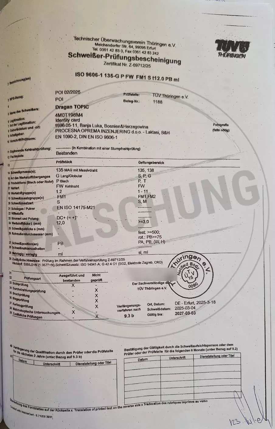 The following fake test marks and certificates of TÜV Thüringen have become known to us but haven-t been issued by ourselves in any way: